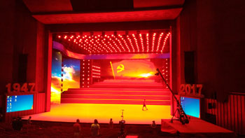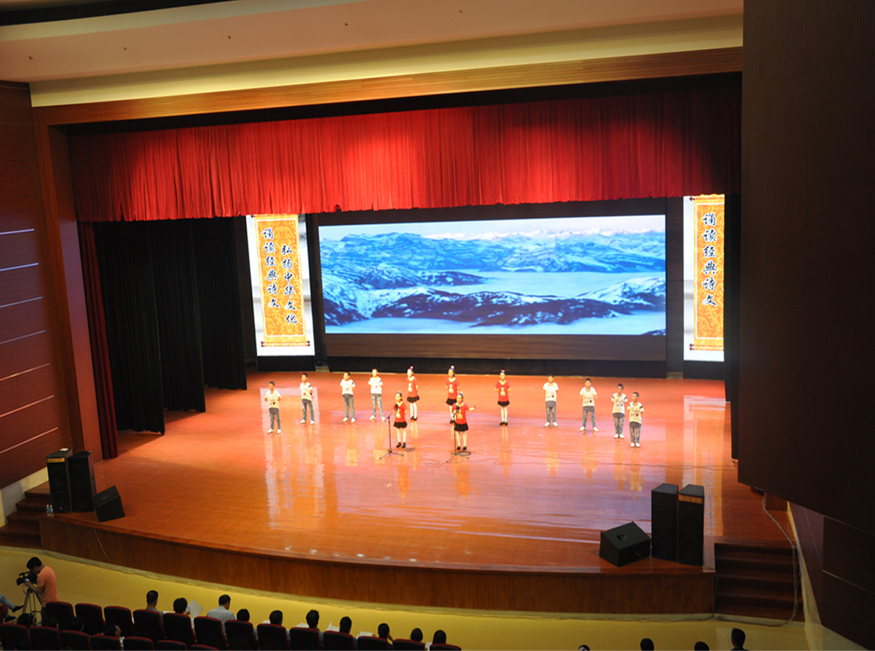 我公司根據(jù)內(nèi)蒙古展覽館演藝廳舞臺大小采用面積為120平米的P3.91 LED大屏幕實現(xiàn)同步顯示相關(guān)的圖像、視頻、文字及語音信息資料,舞臺表演實時播放回放。在舞臺表演時,LED大屏幕可以作為播放或者是影像背景墻,增加可視效果。這樣的設(shè)計思路,完全同時可以支持視頻信號、各種制式的AV信號、TV射頻信號、各種分辨率的高清信號,同時也支持電影的播放形式,滿足各種功能的需要。