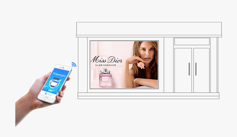 連接控制系統的 WIFI ,用手機/電腦控制。支持智能手機無線推送視頻、圖片,可供消費者拍照上傳互動,帶來更為新穎多元的購物體驗。