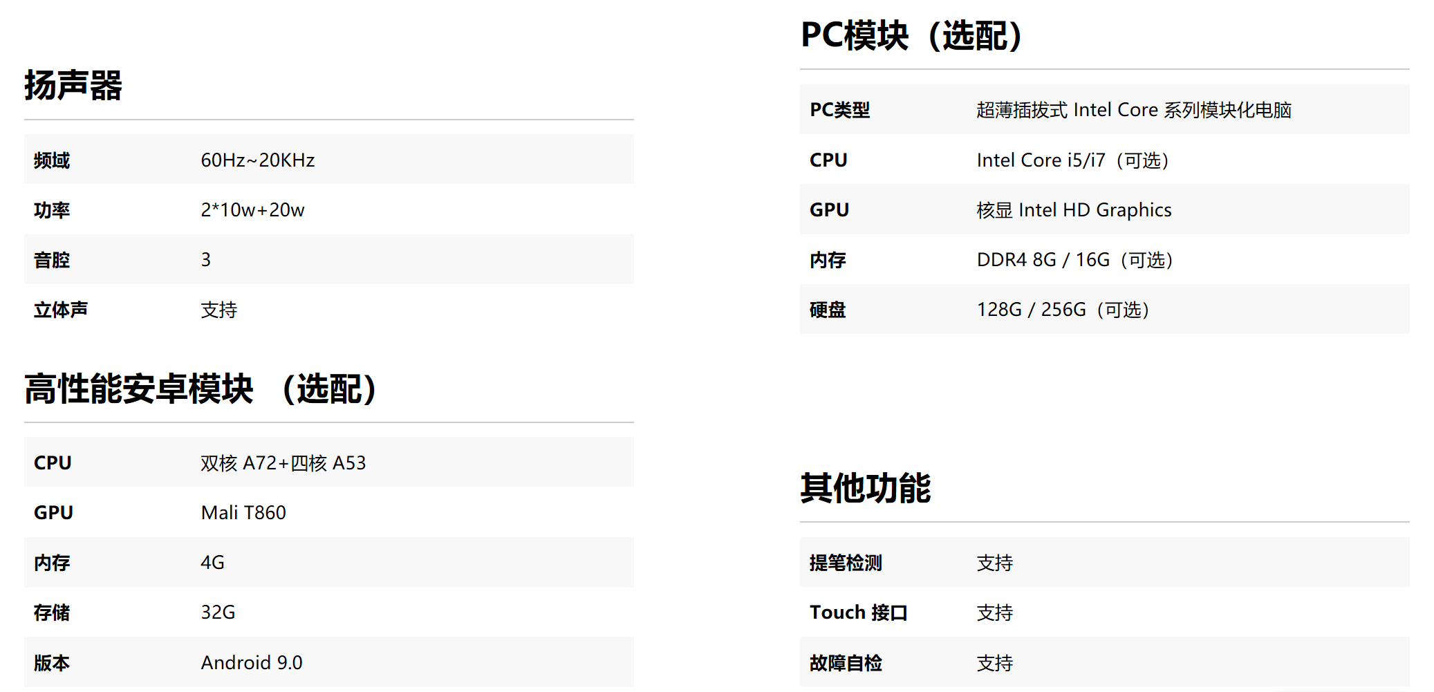會議平板集投影、幕布、電子白板、廣告機、電腦、麥克風、音響等產品功能于一體,滿足現代企業的本地討論、演講匯報、企業培訓、視頻會議等需求的同時,更顯現代會議空間科技之美。